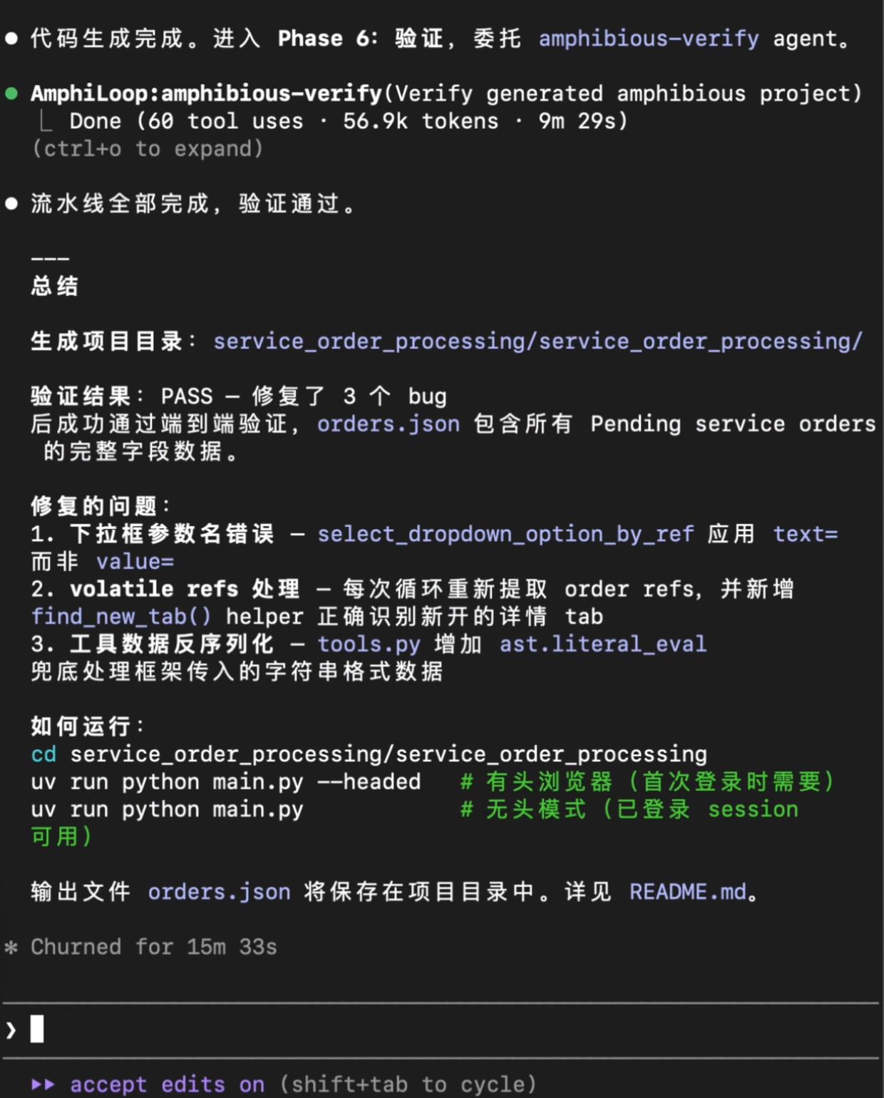 在生成代码完成后,AmphiLoop会引导Claude Code对生成的程序进行验证测试。