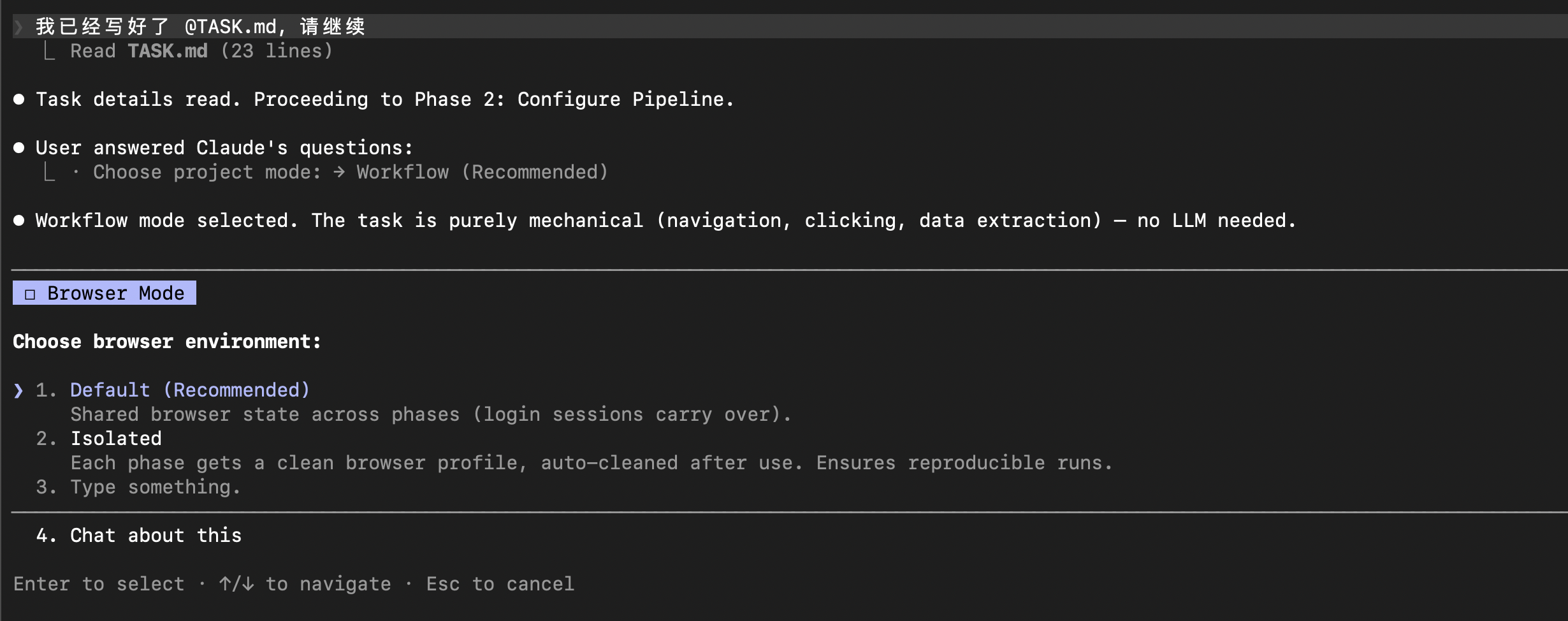 当任务涉及到浏览器自动化时,这个选项会出现。这里提供了两个选项:
