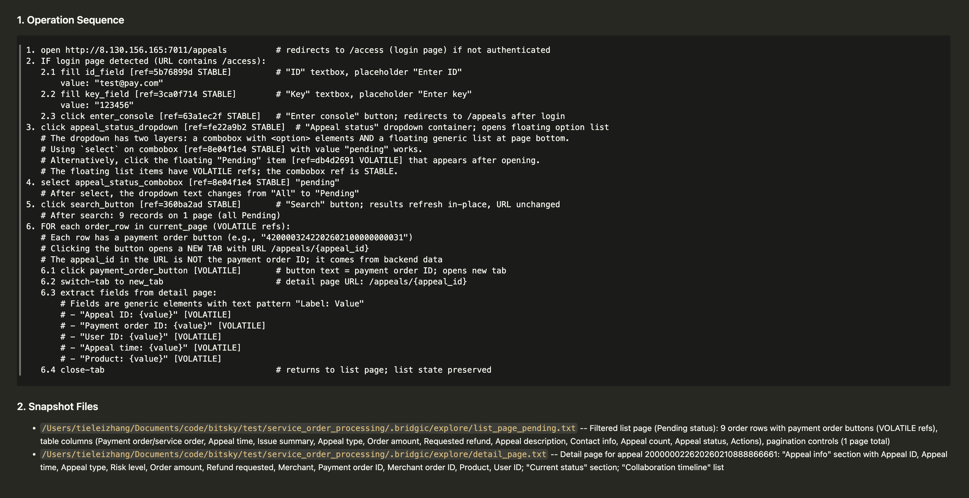 探路指的是系统基于任务描述来对执行路径进行一定程度的探索,为后面的代码生成做好准备。在探路过程中,系统会调用CLI工具(包括bridgic-browser的CLI工具),获得一些动态的、未知的信息,比如CLI工具的核心调用顺序、返回值、页面结构等信息。