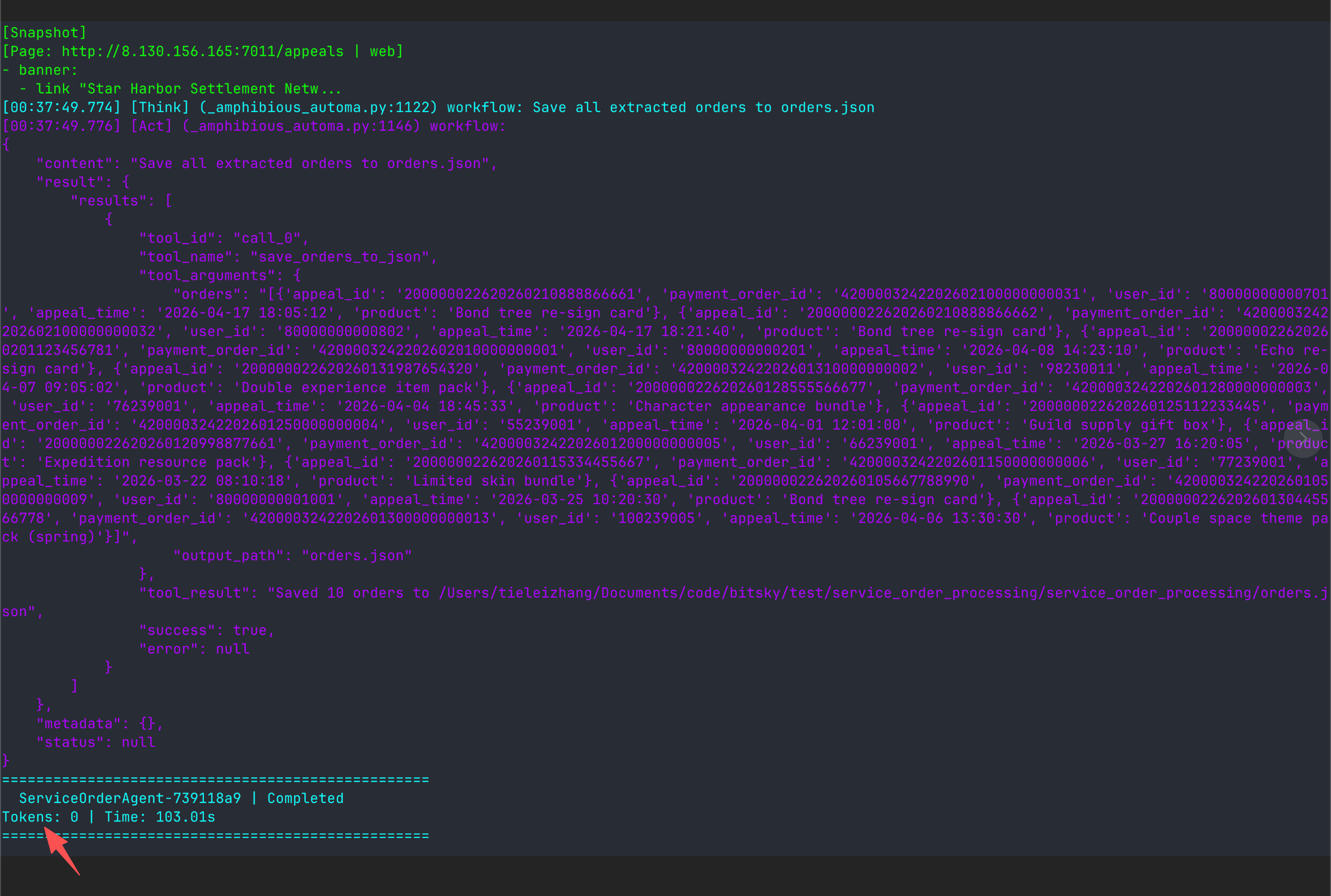程序每次运行结束后,会把每一步的执行过程以及总共消耗的token数量打印出来: