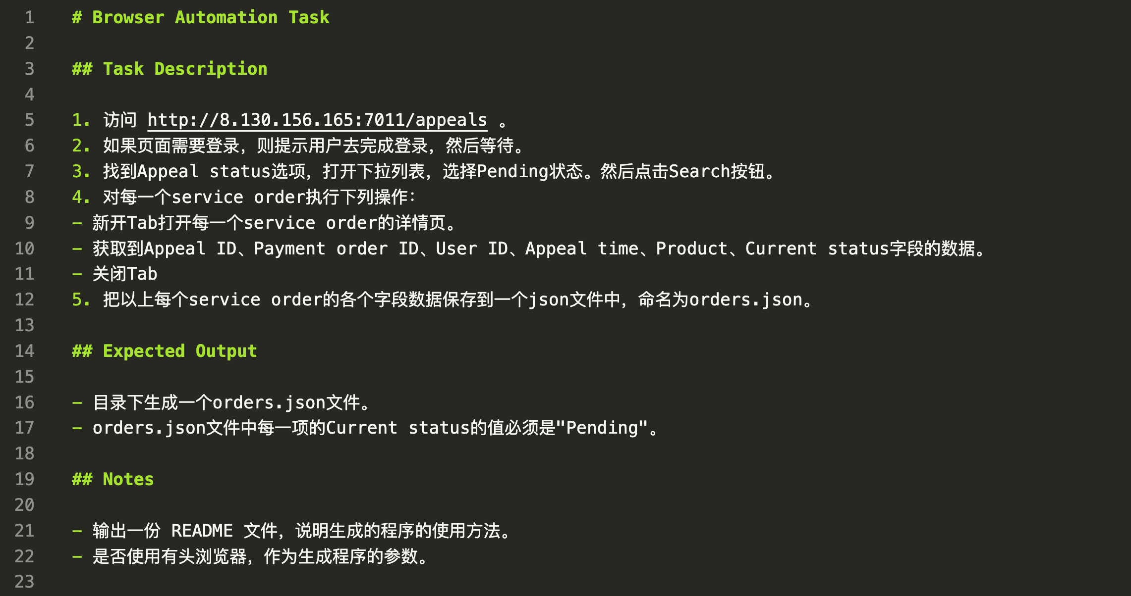 系统已经为你准备了一个TASK.md的模板。接下来你需要修改这个模板的内容,把自己的需求描述出来。在整个使用过程中,这是唯一需要你必须要做的事情。下面是一个例子: