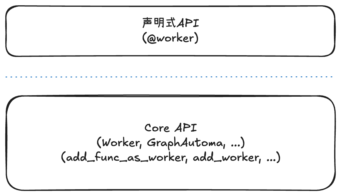 在Bridgic框架的软件架构中,Core API是底层暴露的最基础的一个API层次(代码对应bridgic.core这个package)。Bridgic框架的其他功能特性,都是构建在Core API之上的。当然,上层应用开发者也可以在需要的时候调用这一层API。