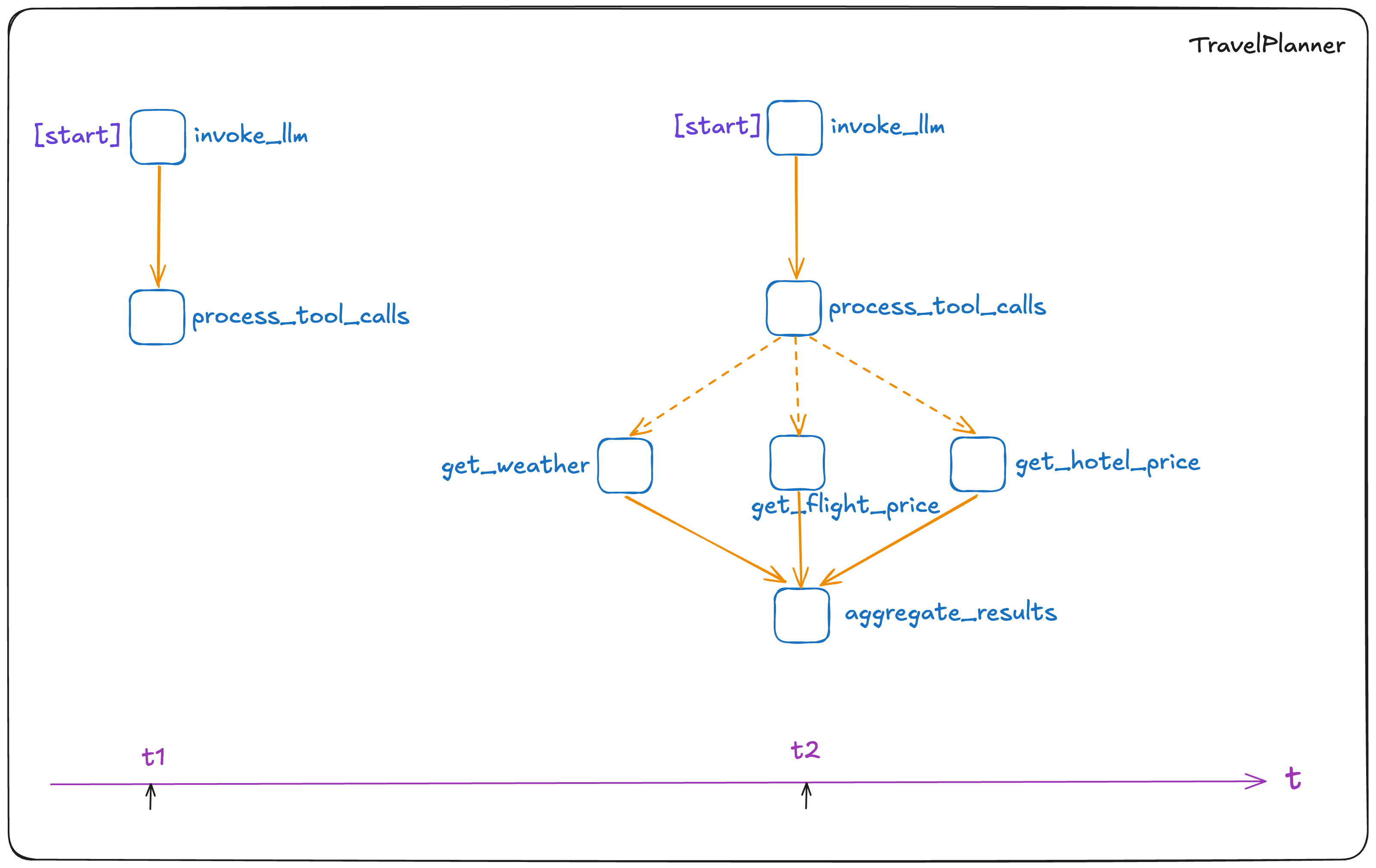 tool_calls。ToolMessage类型,就能发给模型做进一步的处理了,从而驱动一个agent loop的下一步得以执行。为了介绍核心能力,下面仅贴出关键代码片段。TravelPlanner的完整可执行代码,请参考文末的下载链接。