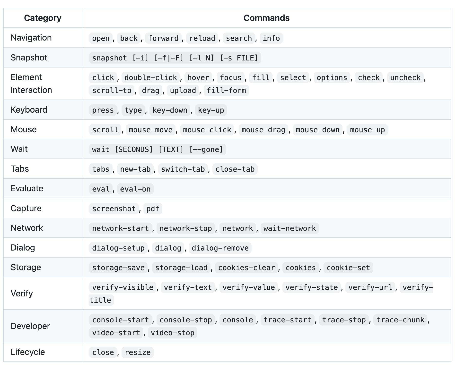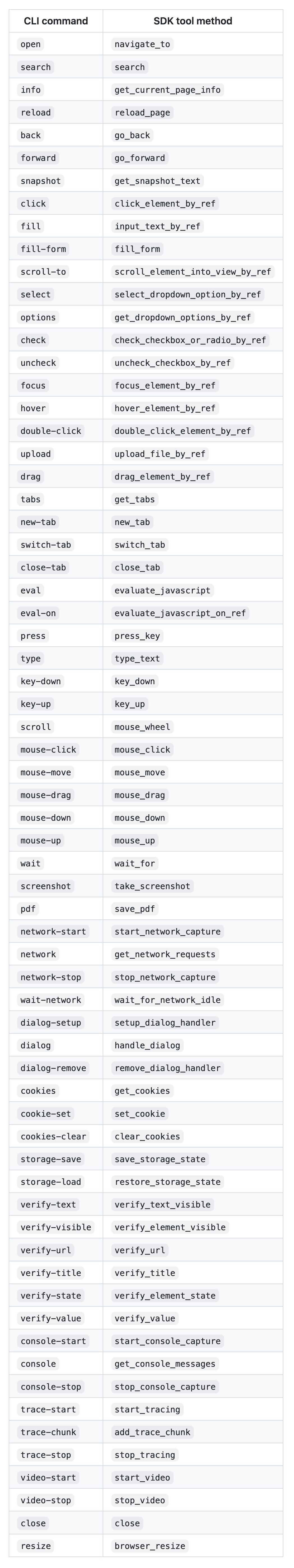 bridgic-browser提供了非常丰富的浏览器控制工具,目前分为15大类总共67个工具。为了支持「先探路、再编码」,这67个工具分为平行的两套来提供,一套是CLI的,一套是Python的。前者用于探路,后者用于编码。
